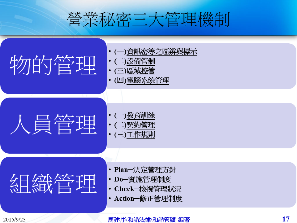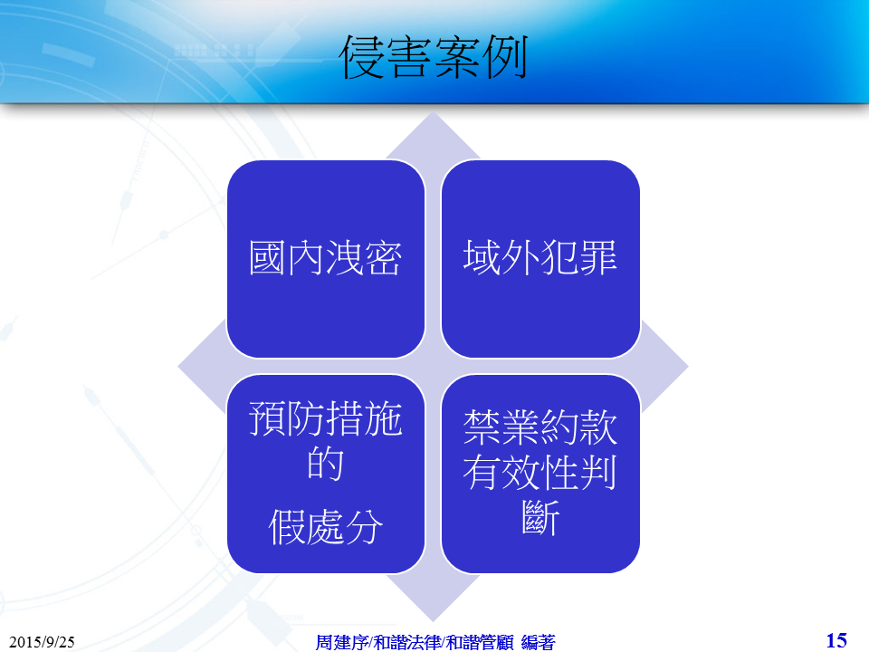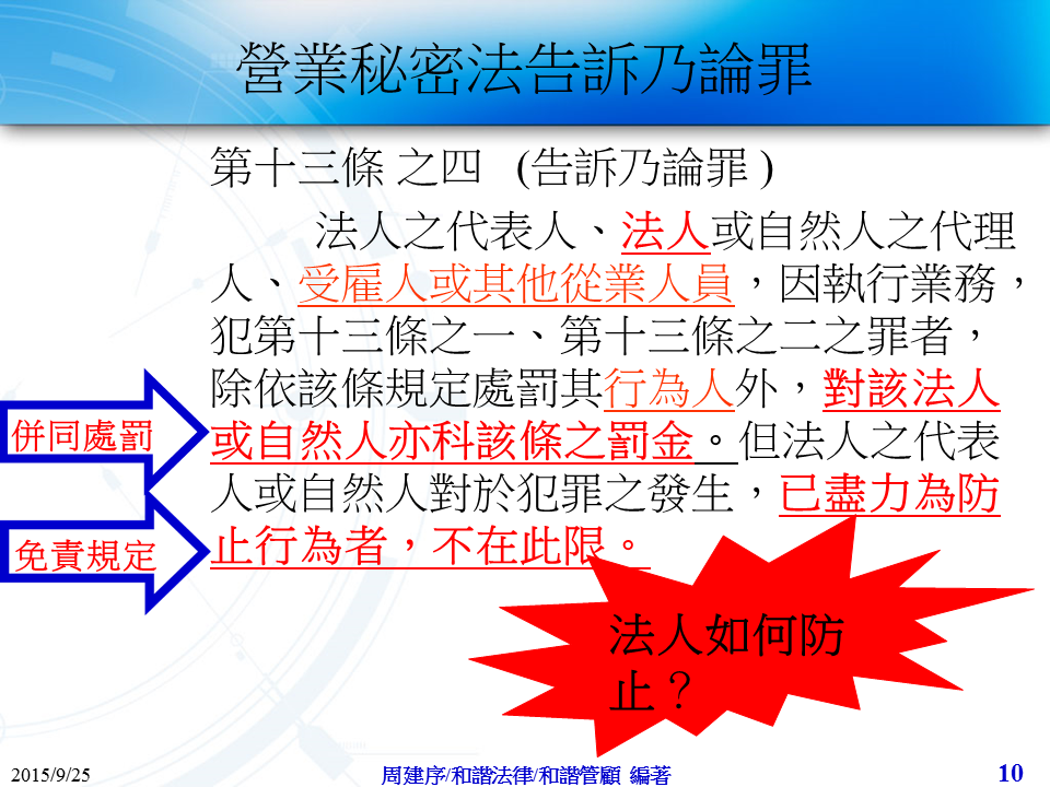 - 1019(日)營業秘密防範與競業禁止(含經理人及董事)之法律問題及爭議案例分析 1019(日)營業秘密防範與競業禁止(含經理人及董事)之法律問題及爭議案例分析http://www.twlea […]...